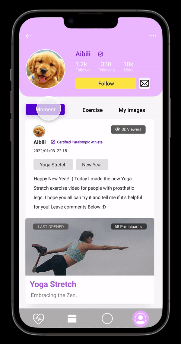 User profile features a collection of their past exercise and posts, a space to celebrate how far they’ve came through: