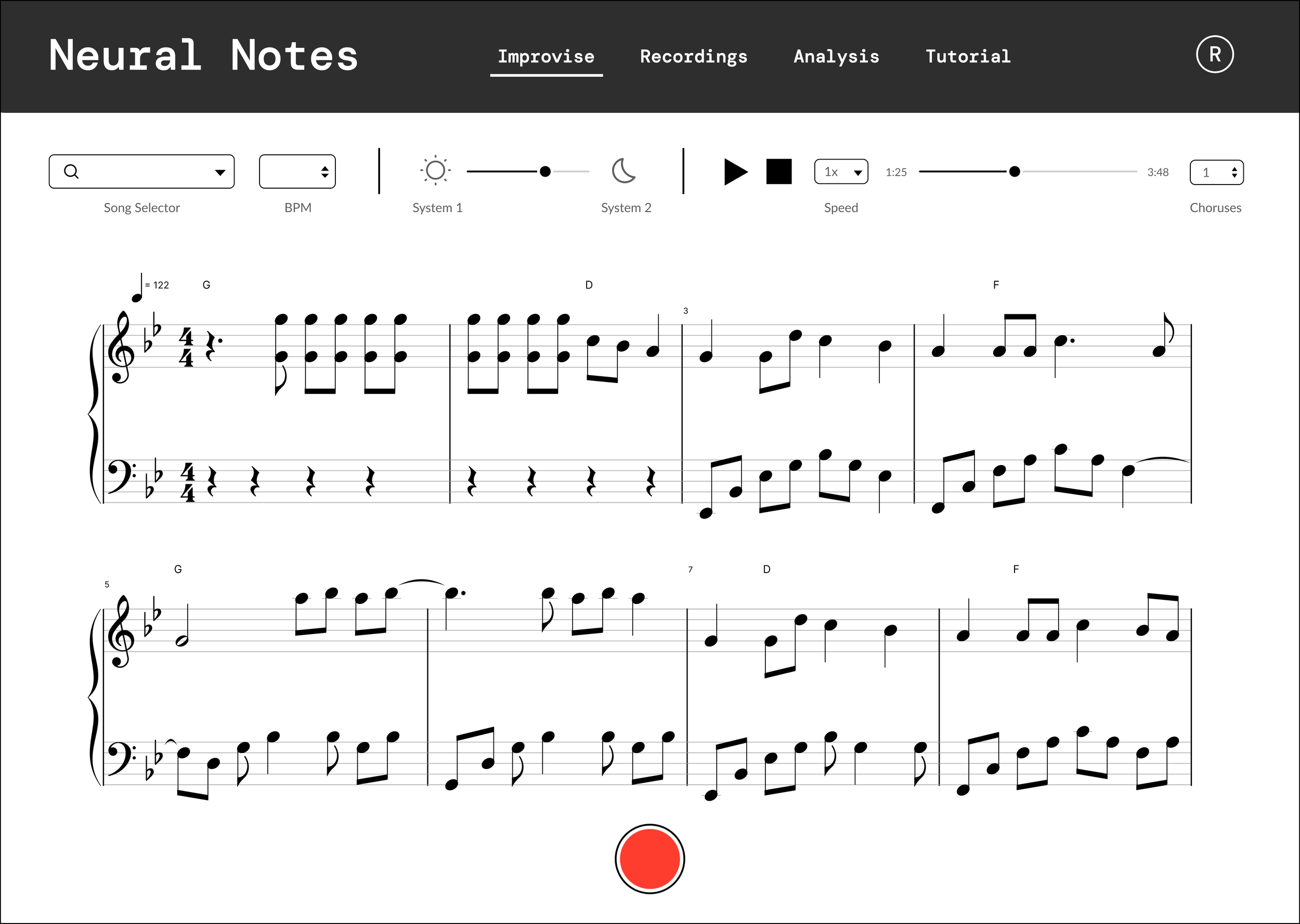 How might we provide Jazz musicians with an intuitive, customizable improvisation practice platform with access to feedbacks of past improvisations?