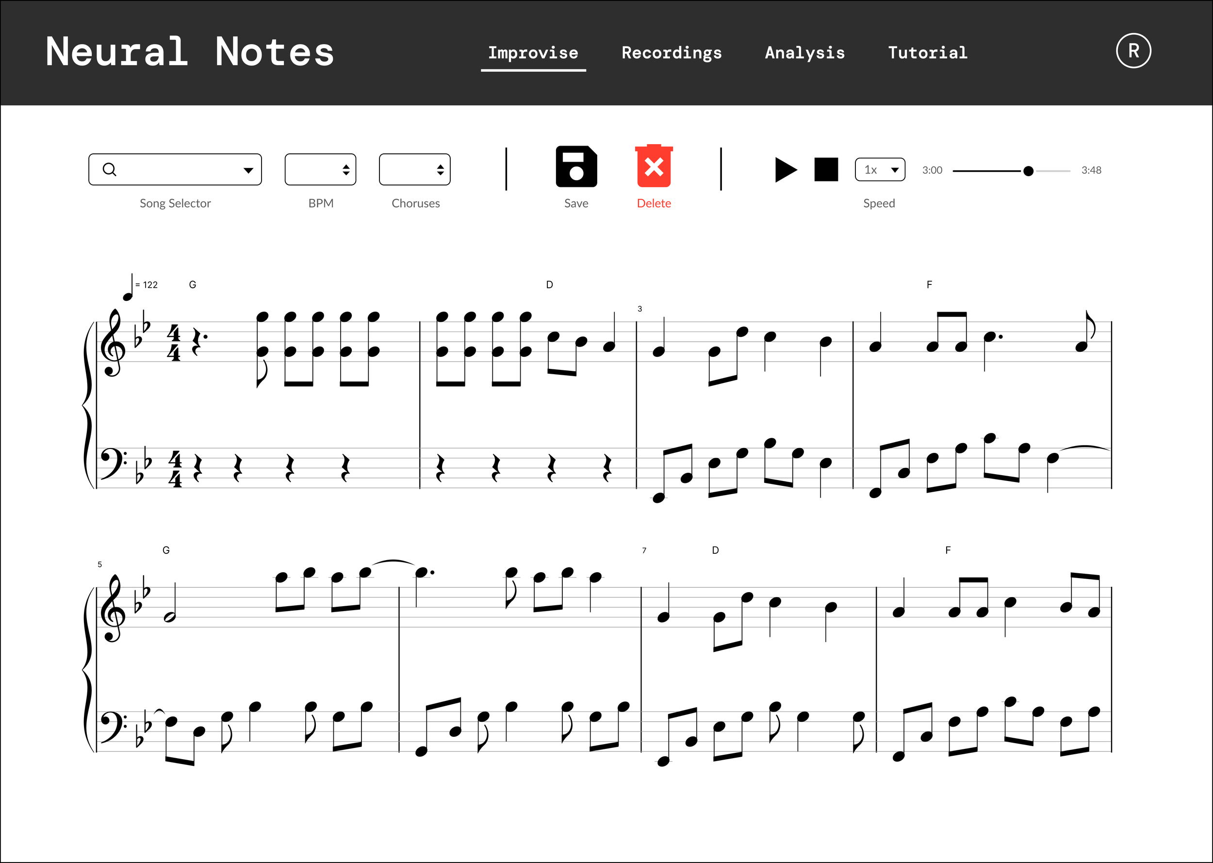 Feedback: utilize machine learning to give personalized feedbacks based on past improvisations.