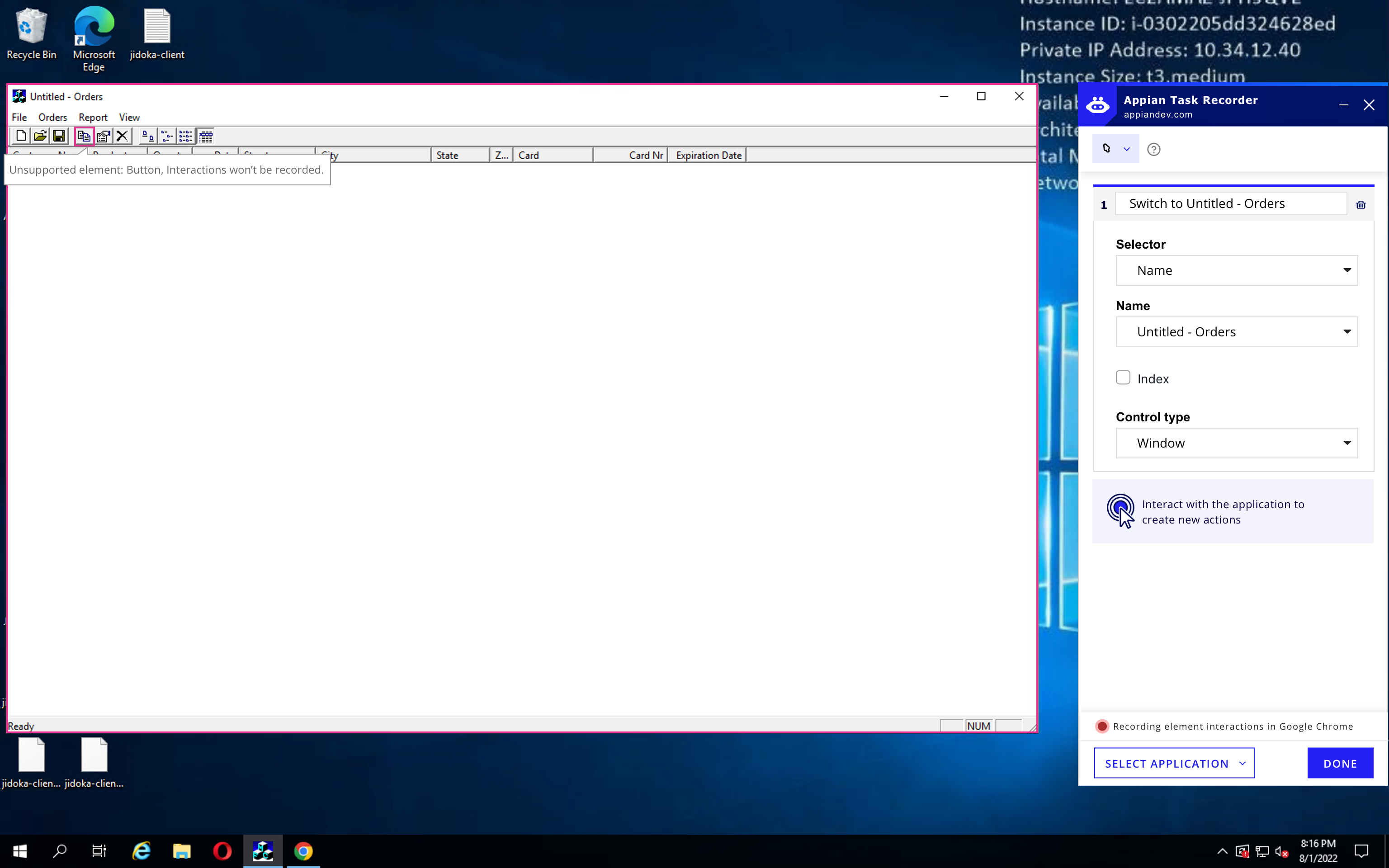 Appian developer to develop a robotic process to enter in customer information through the Orders app using Task Recorder through a Citrix Vitrual Machine.