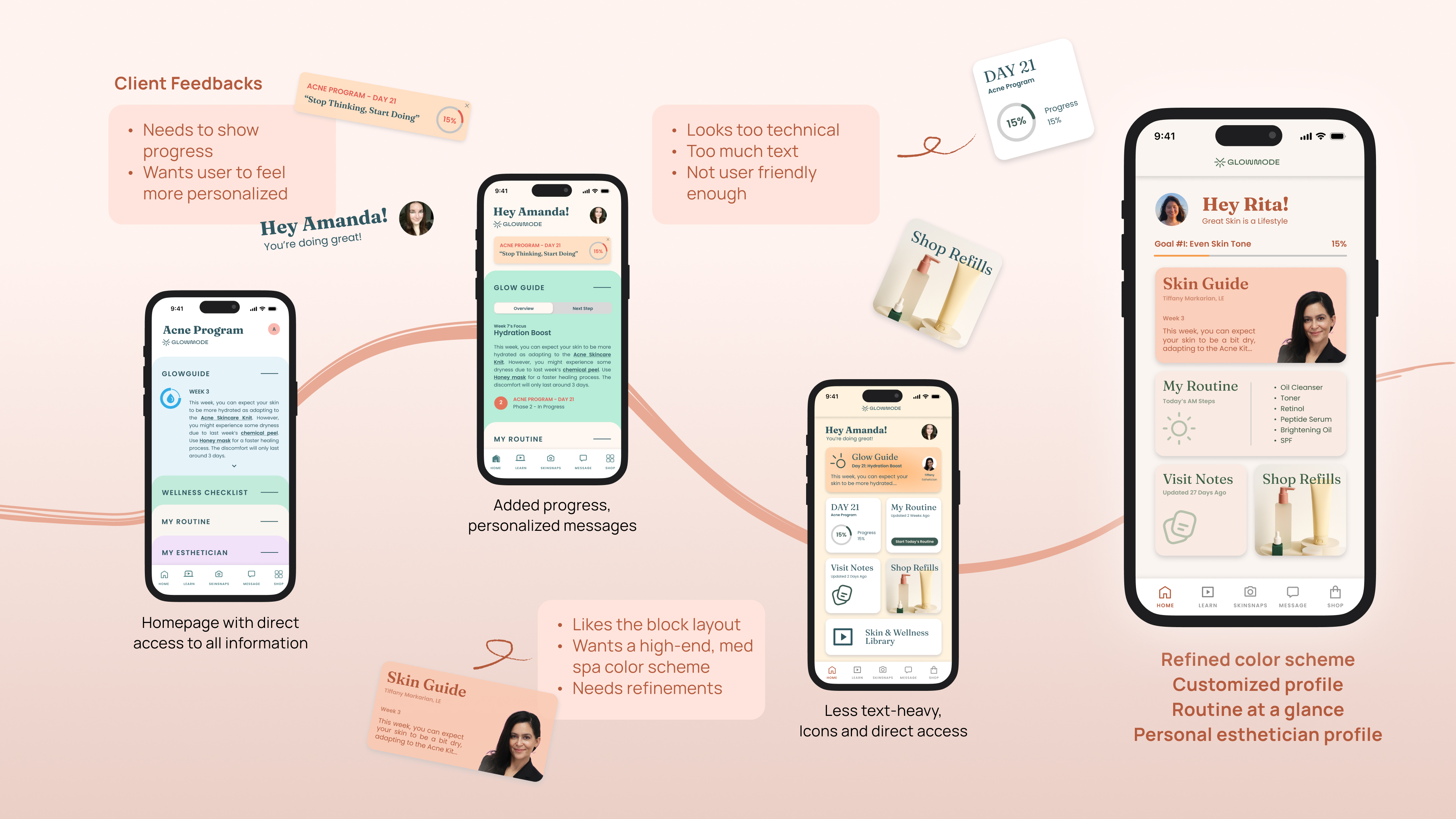 The app integrates all key client touchpoints from beauty clinics into one seamless experience - beauty program tracking, personalized skincare routines, direct esthetician-client communication, clinic visit notes, and more. For businesses, it drives success by building client trusts, real-time progress tracking, and staying informed of client needs.