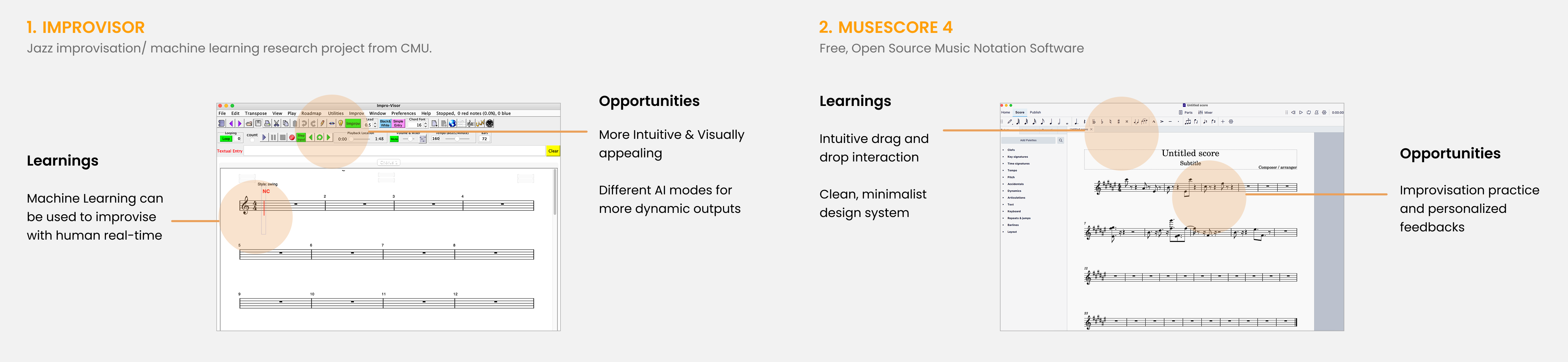 Has any existing software already addressed the challenges of practicing improvisation? Is there a demand for a new application in this area? With the user challenge in mind, I explored some existing products, learning what made them successful, and if missed opportunities presented.